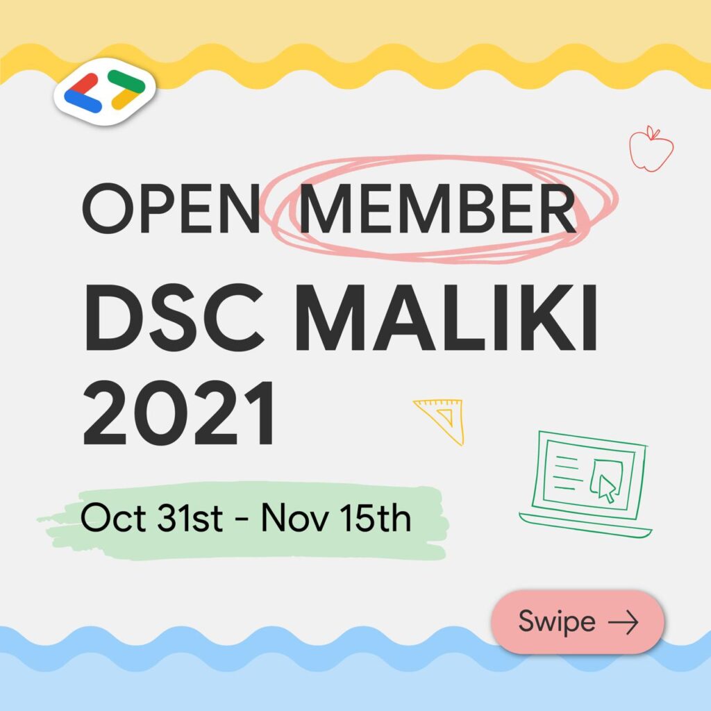 GDSC UIN Maulana Malik Ibrahim Malang telah membuka pendaftaran untuk seluruh mahasiswa di seluruh Indonesia dari segala jurusan yang berminat mempelajari dan mendalami teknologi khususnya teknologi Google. Keuntungan ketika menjadi member GDSC Maliki (UIN Maulana Malik Ibrahim Malang) : Learning Platform (Premium & Free) Badges Member Certificate Networking Softskills Hardskills