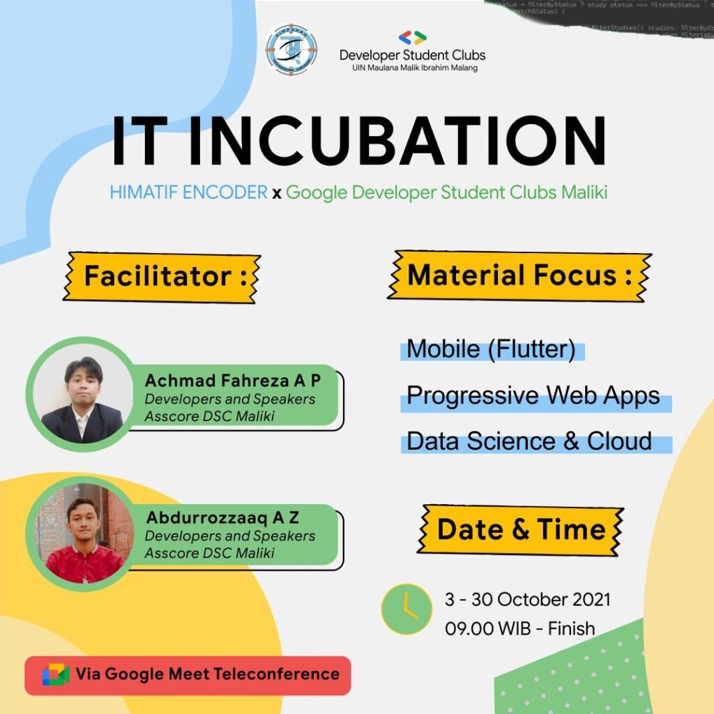 IT incubation is a program from HIMATIF ENCODER for new students of informatics engineering at UIN Maulana Malik Ibrahim Malang, which aims to introduce and deepen as well as help discover their talents and interests in informatics engineering. This program is intended for new students at UIN Maulana Malik Ibrahim