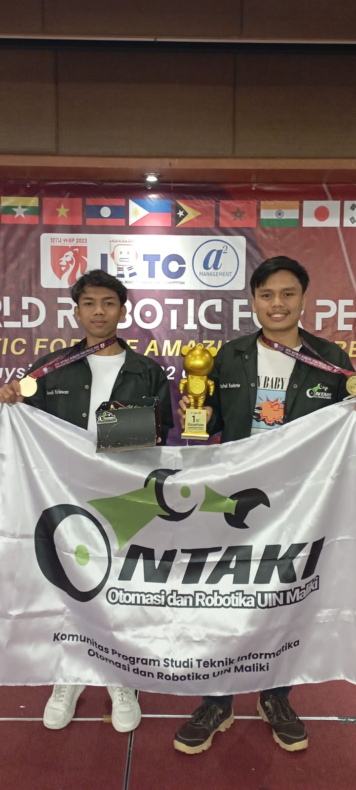 Congratulation to the achievement of Ontaki Robot Team informatic Engineering UIN Maliki Malang as Winner of Robo Sumo IOT 3 KG category on 12 World Robotic For Peace 2023 Singapore-Malaysia-Thailand Which was held from 22 – 28 October 2023. This competition is organized by Federation Of International Robotic Training And Competition
