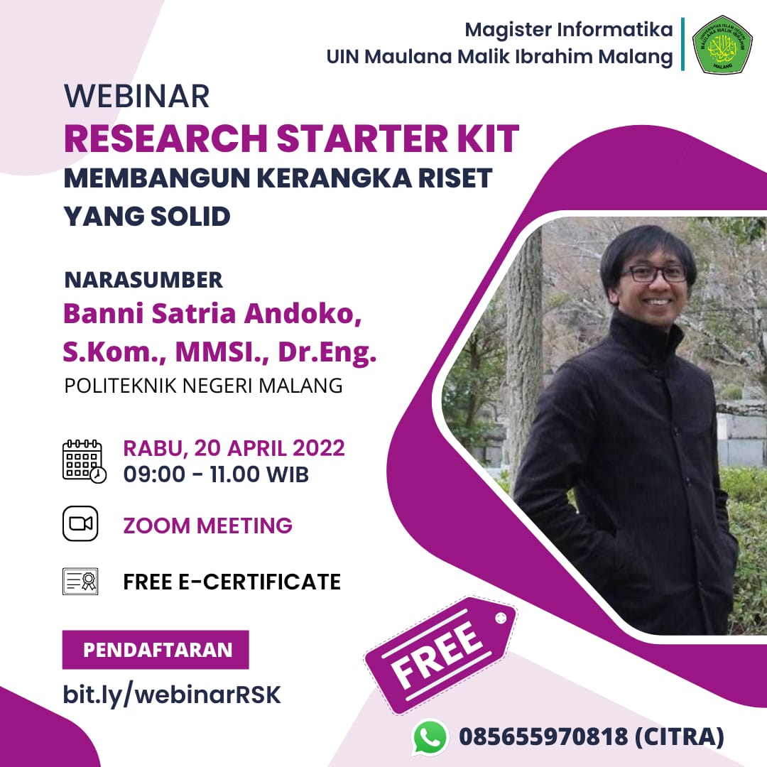 A guest lecture to discuss the starter kit of strong research foundation was held on 20 April 2022 by online webinar. The event present a keynote speaker by Dr.Eng. Banny Satria Andoko., S.Kom., MMSI from Politeknik Negeri Malang. Hundreds of participants (302) joined with the event that included the researchers, the lecturers, the students, and some professionals from some local universities and industry.
