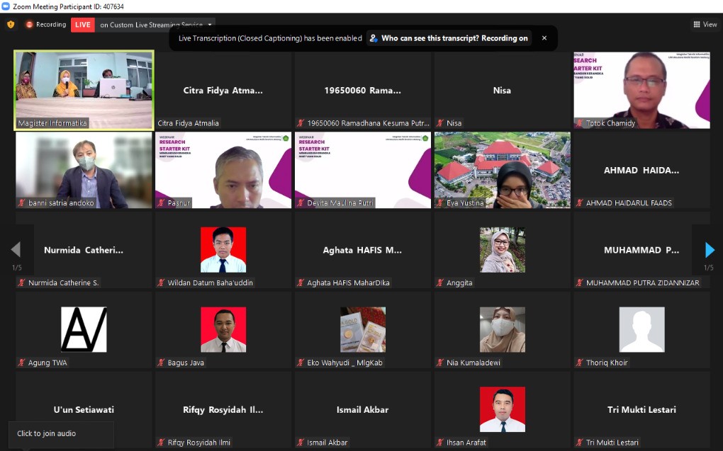 A guest lecture to discuss the starter kit of strong research foundation was held on 20 April 2022 by online webinar. The event present a keynote speaker by Dr.Eng. Banny Satria Andoko., S.Kom., MMSI from Politeknik Negeri Malang. Hundreds of participants (302) joined with the event that included the researchers, the lecturers, the students, and some professionals from some local universities and industry.