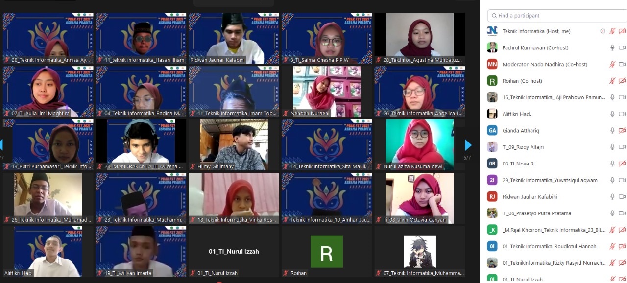 Informatics Engineering Department welcomes new students intake 2021 on Thursday, 02 September 2021. The event is “New Student Orientation” for both Undergraduate and Master Program. It consists of the introduction of the department to the new students, intoduction of student communities, group of research interests, and etc. The event takes place using conference meeting due to pandemi. This year, there are 172 new students enrolled in Undergraduate Program and 12 new students in Master Program at Computer Science Department