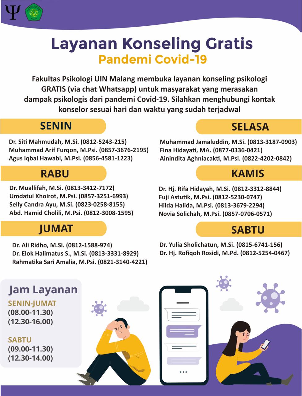 Fakultas Psikologi UIN Malang Buka Layanan E-Counseling
