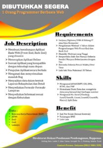 Dibutuhkan Programmer web dengan spesifikasi sebagai berikut: