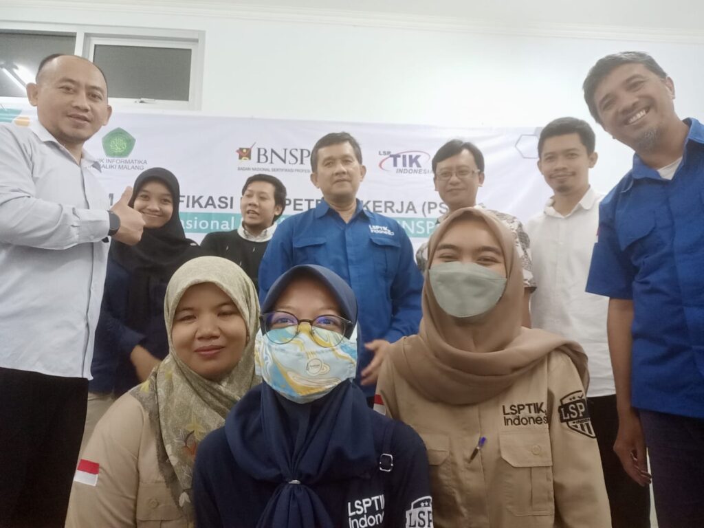 Teknik Informatika in collaboration with the National Professional Certification Agency (BNSP) & LSP TIK Indonesia carries out a Work Competency Test for lecturers, employees and students with a data management staff and office professional test scheme. This activity was held on Monday, July 18, 2022, with 54 participants.
