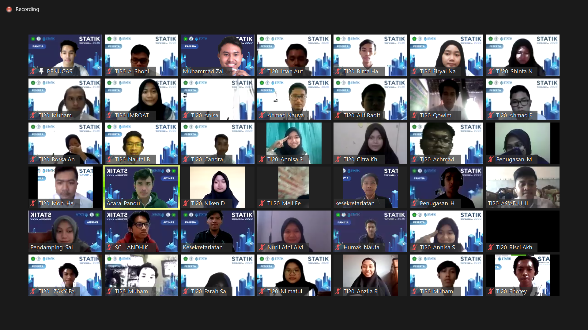 STATIK or stands for Semarak Ta’aruf Teknik Informatika is an event that aims to introduce all the culture of the department to the freshman of 2020 in the Department of Informatics and make them adapt to the various tasks they will face later. There is something different in STATIK 2020 where the entire event is held online. During the Covid-19 pandemic, the event was held online. Even with all the limitations and unexpected events, it did not dampen the enthusiasm of the organizing committee to hold the event well and conducive and did not make the enthusiasm of new students majoring in the Department of Informatics to participate in the event.