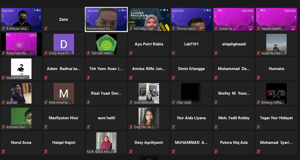 Summer program 2021 aims to share knowledge of information technology (IT) and to expand the collaboration between universities and IT communities. The program is offered to IT practitioners and university students majoring in computer science and other related IT fields. Summer program 2021 is organized by Jurusan Teknik Informatika, Faculty of Science and Technology, UIN Maulana Malik Ibrahim Malang.